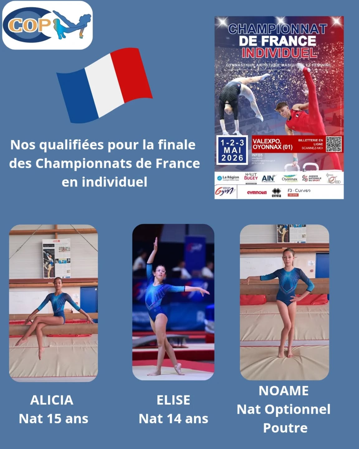 Le COPgym est fier de vous annoncer que trois de nos gymnastes ont décroché leur ticket pour la finale du Championnat de France individuel GAF! Élise en Nat 14 ans Alicia en Nat 15 ans Noame en Nat optionnel poutre Une belle récompense pour leur travail, leur détermination et leur […]