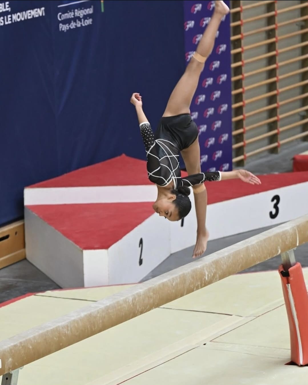 Pendant plus d’1 min, sur une bande large de dix centimètres, la gymnaste se joue des lois de la pesanteur. Cet exercice associe acrobaties, souplesse, équilibre, rythme et expression. Une technique de précision et un grand pouvoir de concentration sont les clefs de la réussite à cet appareil de vérité.