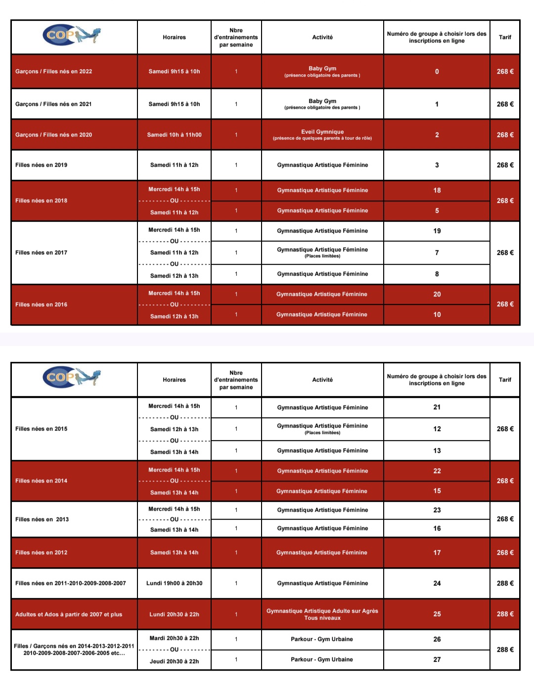 S'inscrire au Cop Gym pour la saison 2026-2027 :